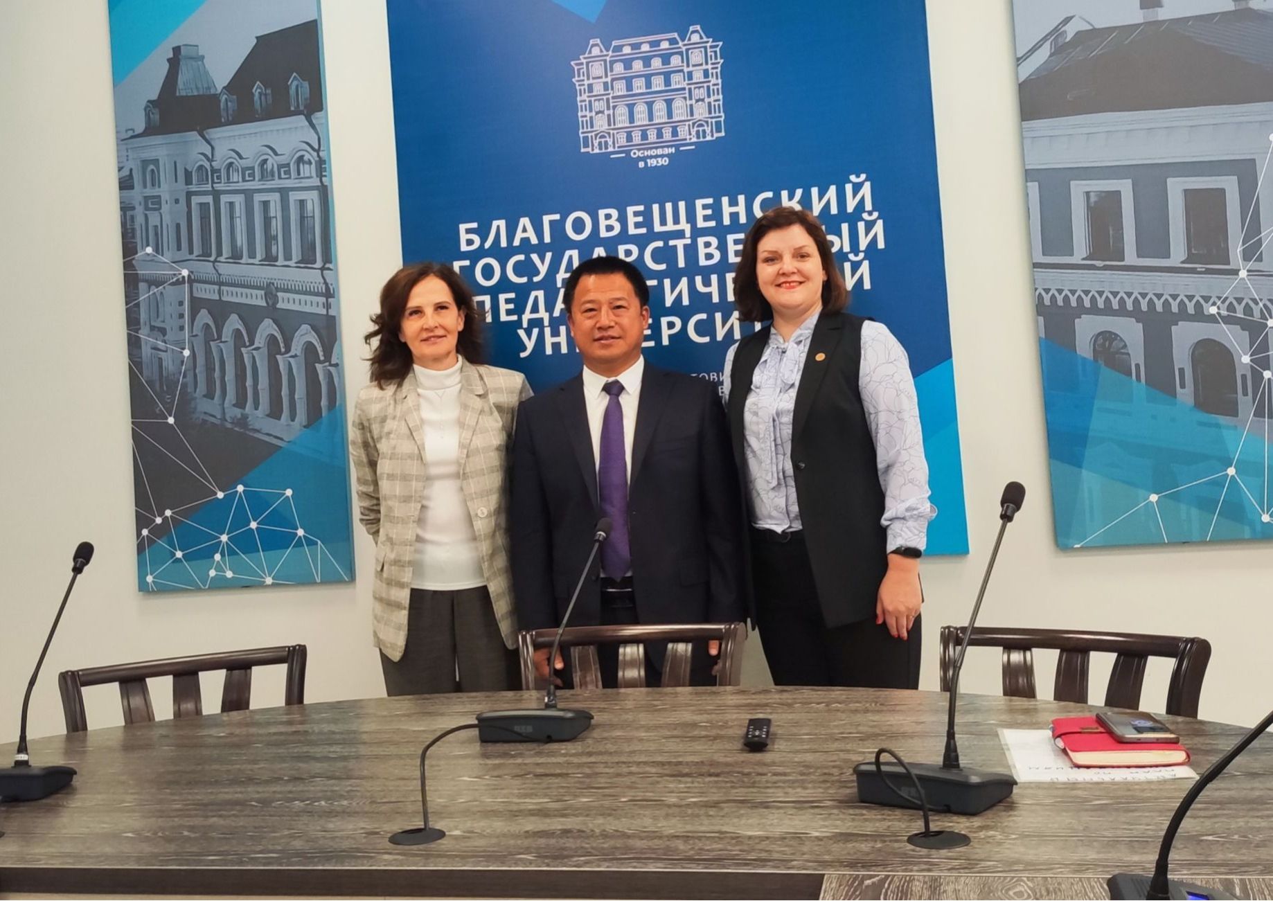 在布拉戈维申斯克国立师范大学,代表团与该校教学副校长波波娃·玛丽娜·尤里耶夫娜、科研副校长基列耶夫娜·娜塔莉娅·弗拉基米尔洛夫娜等相关人员举行会谈。尤里耶夫娜对代表团的来访表示热烈欢迎,表达了进一步深化两校在教学、科研领域合作的意向。陈庆山代表学校感谢布师大多年来对由我校牵头成立的中国东北地区与俄罗斯远东及西伯利亚地区大学联盟的大力支持,并邀请校长维拉·维塔丽耶夫娜·肖金娜参加10月在俄罗斯哈巴罗夫斯克举行的第十四届中俄大学校长论坛。会谈中,双方围绕汉语国际教育和俄语专业学生互派,在生物、化学、数学等领域开展科研合作,共同申报国际科研合作等问题交换了意见,并达成了一致。会后,代表团参观了布师大孔子学院。